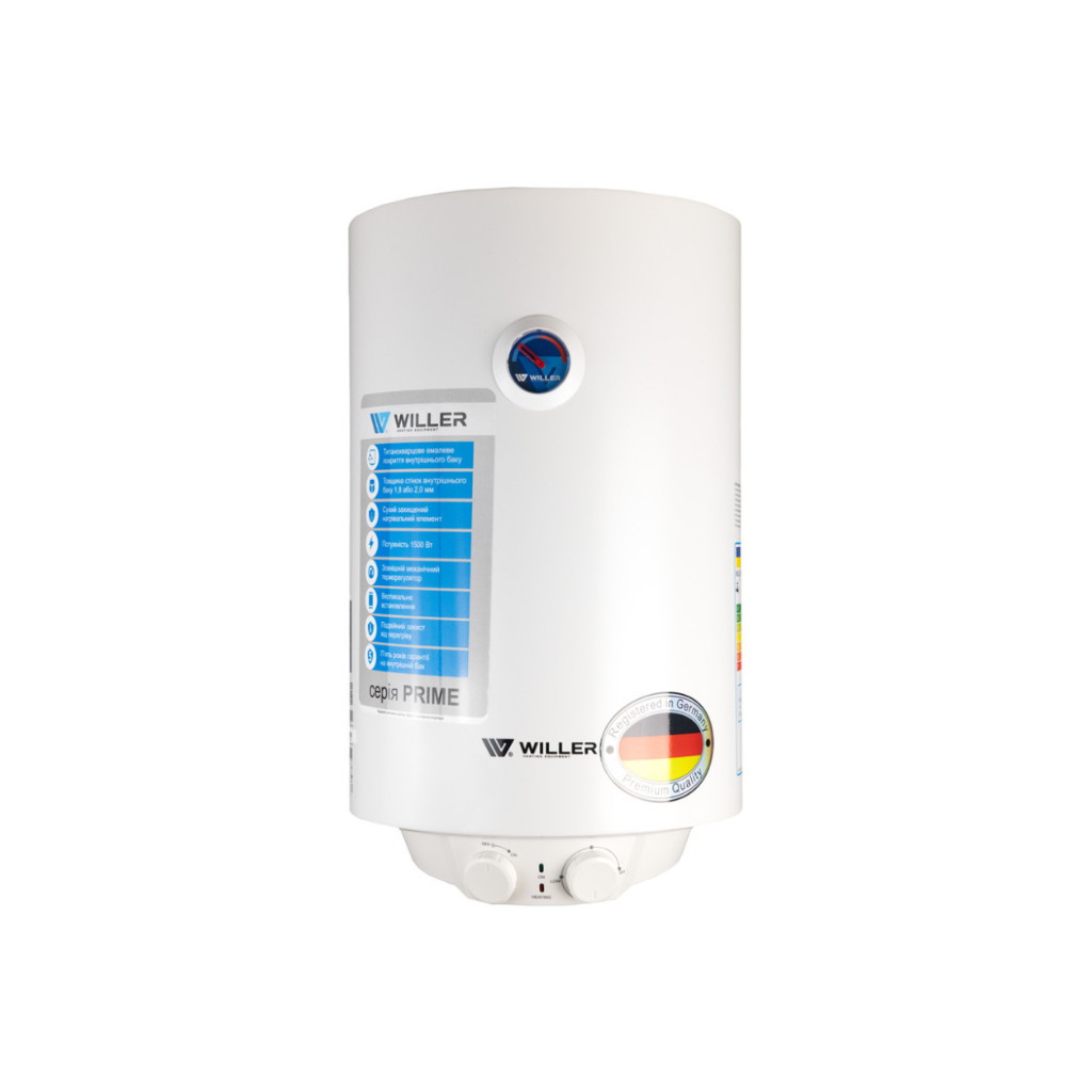 Представляем надёжный накопительный электрический водонагреватель WILLER EV30DR-Prime с объемом 50 литров и формой цилиндра. Его мощный сухой нагревательный элемент из нержавеющей стали имеет 1500 Вт. Внутренний бак изготовлен из стали, покрытой титанокварцевой эмалью, а также имеется защитный магниевый анод, обеспечивающий долгий срок службы. Он предназначен для нагрева воды для бытовых нужд, душа и ванной, применяется в доме, квартире или на даче.