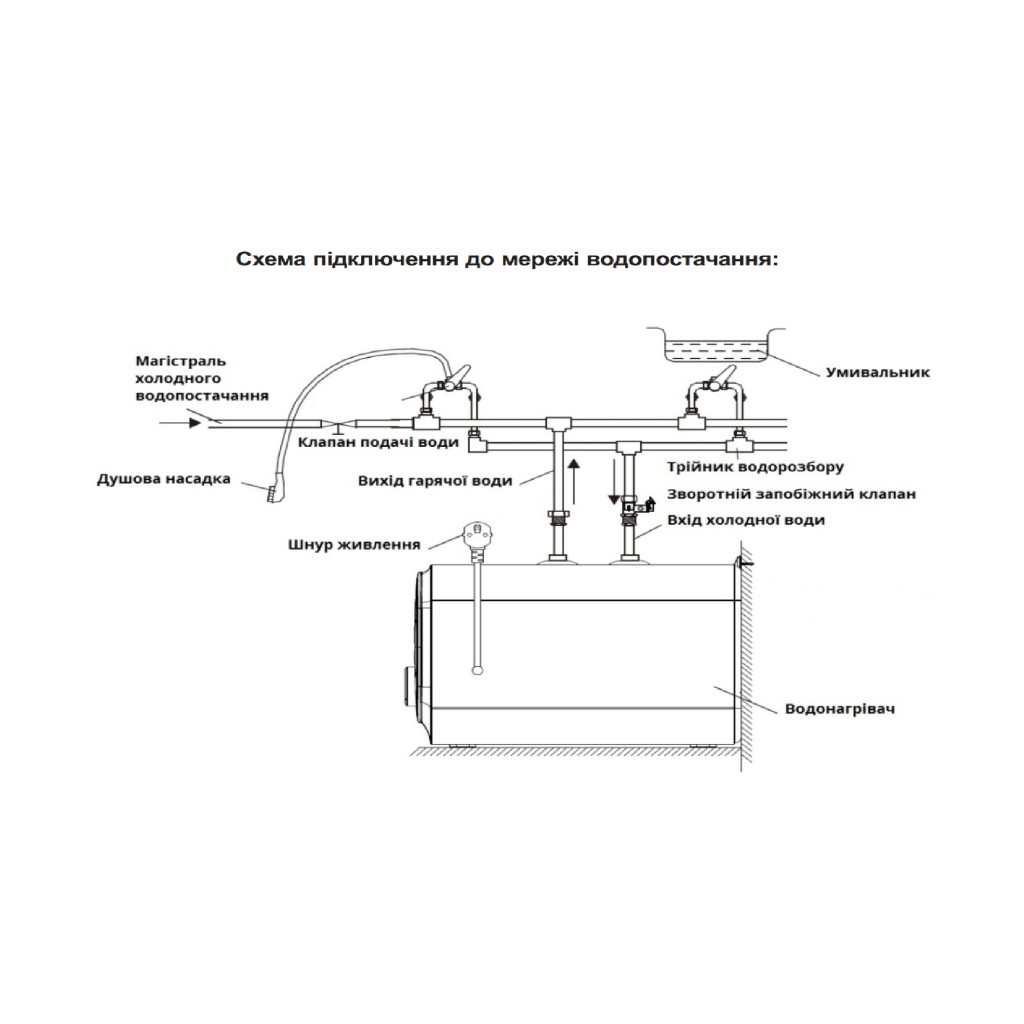 - Удобная установка: Благодаря напольному варианту установки и подключения, данный водонагреватель может быть размещен под мойкой и не требует крепления на стену, что обеспечивает удобство в эксплуатации. Также есть возможность установки на полку.